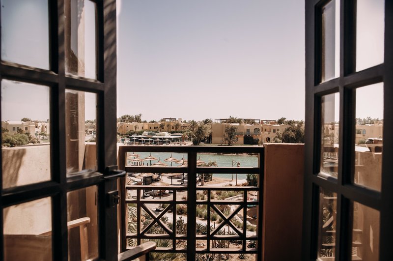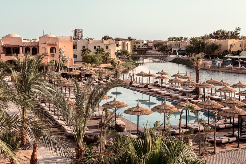 Bezpośrednio przy piaszczystej plaży z dostępem do rafy koralowej w El Gounie, w pobliżu restauracje, sklepy, życie nocne. Ok. 40 km od lotniska w Hurghadzie.