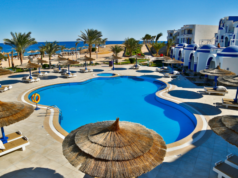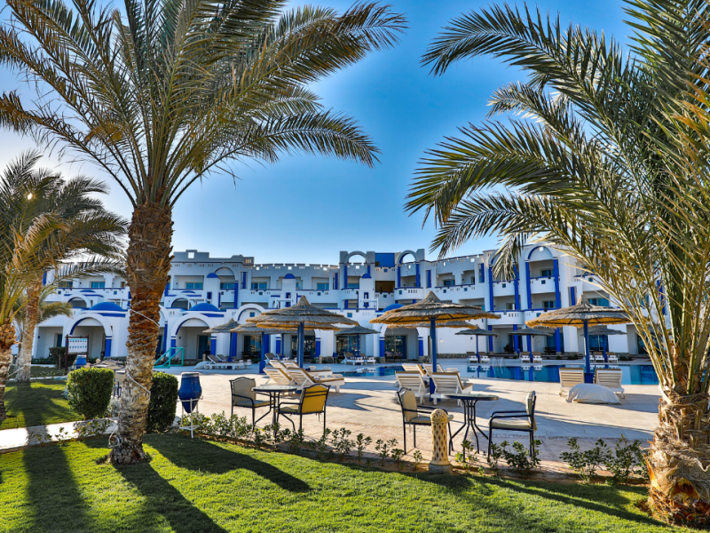 Bezpośrednio przy piaszczystej plaży z rafą koralową, bezpłatne leżaki i parasole. Ok. 30 km od Safagi, ok. 80 km od lotniska w Hurghadzie.
