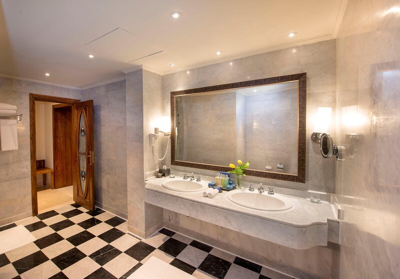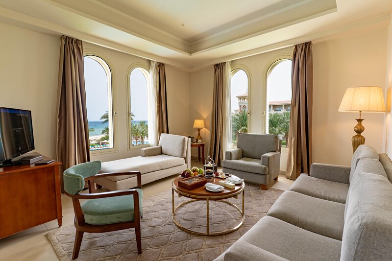 Luksusowy hotel z własną przystanią i piękną 600 m prywatną plażą (rafa koralowa przy zejściu do wody). Cały kompleks rozpościera się na 100 tys. m². Architektura o klasycznym, śródziemnomorskim charakterze inspirowana jest jednym z najpiękniejszych arabskich pałaców, otoczonym rozkwitającymi bujnymi ogrodami i mieniącymi się błękitnymi, nieskończonymi basenami (7 odkrytych, w tym 2 podgrzewane w sezonie zimowym). Kompleks łączy splendor historii z nowoczesnymi wygodami tworząc oazę spokoju. Wnętrza zostały zaprojektowane w eleganckim i orientalnym stylu. Przy wejściu tradycyjny arabski dziedziniec (Sahn) oferuje luksusowe poczucie przestrzeni wzbogacone o szlachetne materiały. Przechodząc do Sali głównej, można podziwiać wspaniałe widoki na zatokę, wielkie okrągłe schody prowadzą na pierwsze piętro nadając splendor i majestatyczną wartość przestrzeni. Imponujące wymiary holu (bezpłatne Wi-Fi) i ogólnodostępnych przestrzeni, po których poruszają się Turyści sprawia poczucie harmonii piękna i komfortu. Goście mogą korzystać z; restauracji głównej, 7 restauracji a la carte, 7 barów, bezpłatnego sejfu w recepcji, bogatej infrastruktury sportowo-rekreacyjnej. Specjalne, wydzielone strefy przeznaczone wyłącznie dla osób dorosłych.
