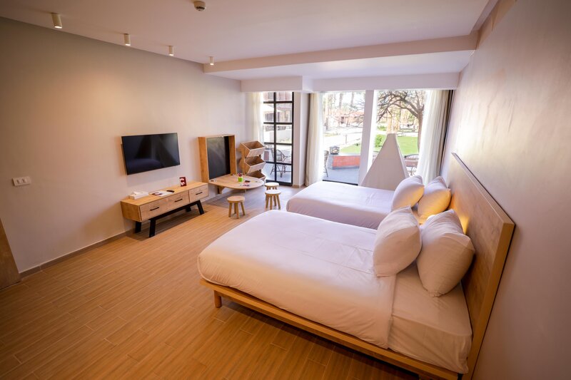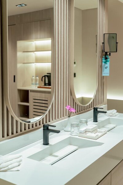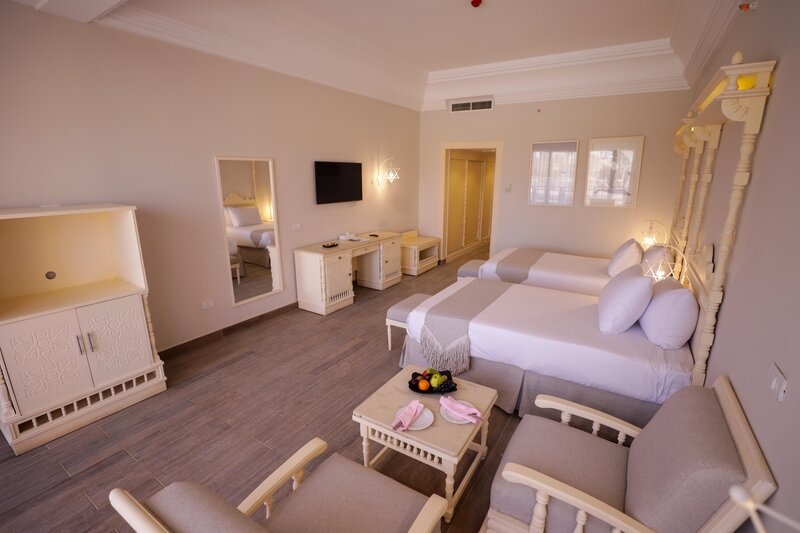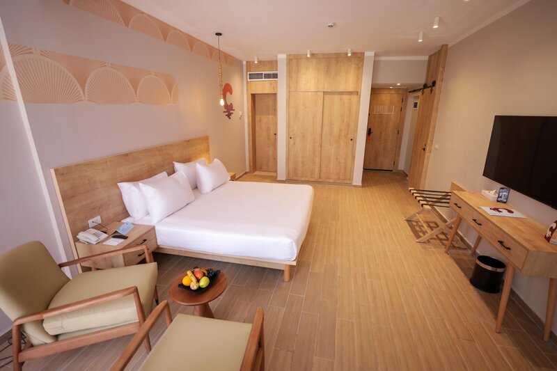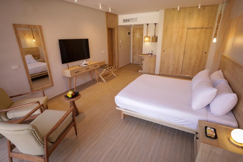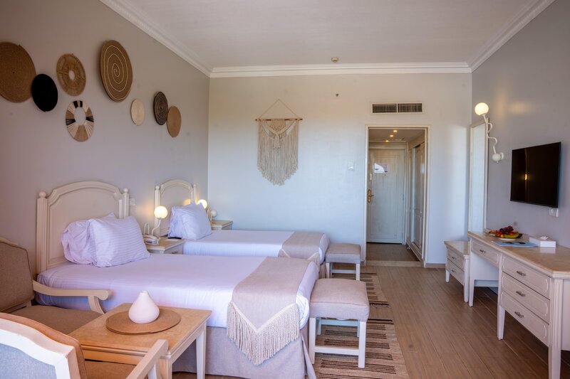 W ofercie 319 pokoi. Wszystkie wyposażone w klimatyzację, mini bar, telefon, TV sat., Wi-Fi, zestaw do parzenia kawy i herbaty, sejf, łazienkę; wc, wanna/prysznic, suszarka do włosów, balkon/taras. Pokój SUPERIOR Z WID. NA OGRÓD (DSG/ESG/TSG) ok. 36-40 m2, SUPERIOR Z WID. NA BASEN (DSP/ESP/TSP) ok. 36-40 m2, DELUXE Z WID. NA OGRÓD (DXG/EXG/TXG) ok. 46-50 m2, DELUXE Z WID. NA MORZE (DXM/EXM/TXM) ok. 46-50 m2, DELUXE Z WID. NA BASEN/LAGUNĘ (XLD/XLE/XLT) ok. 46-50 m2, RODZINNY DELUXE Z WID. NA MORZE (FMX) ok. 91-100 m2.
